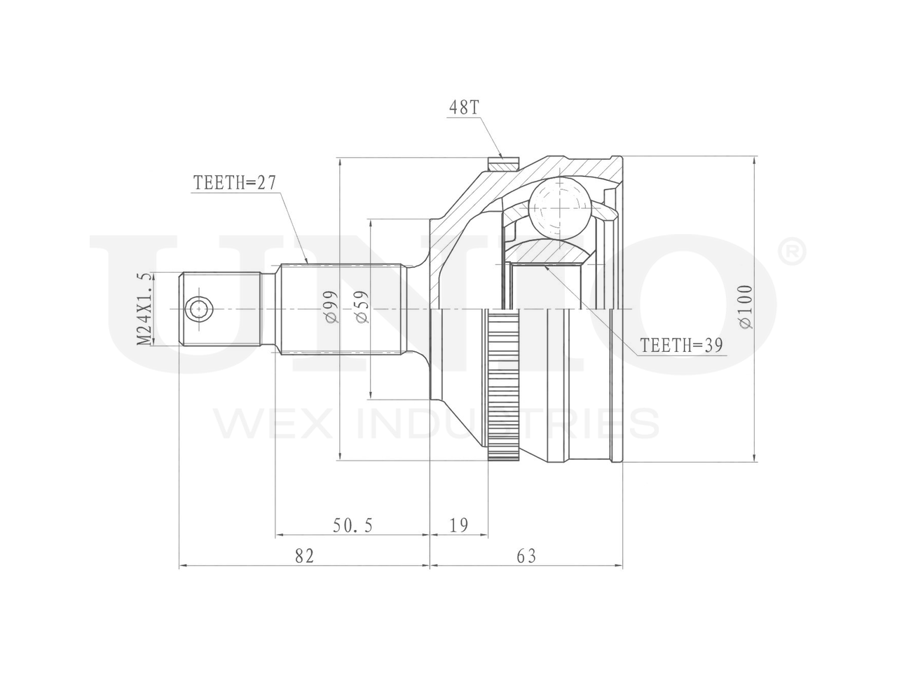 Артикул товара - CVJ-20259, Сторона установки:Передний мост, Внешнее зацепление со стороны колеса:27, Внутренне зубчатое соединение со стороны колеса:39, Диаметр прокладки [мм]:59, Число зубцов кольца ABS:48, Длина [мм]:145, Диаметр шарнира [мм]:100, Кольцо-ABS, диам. [мм]:99, Размер резьбы:M24x1,5, EAN:4657814486191, EAN:4657814486191, Тип упаковки:коробка, Длина упаковки [мм]:115, Ширина упаковки [мм]:115, Высота упаковки [мм]:200, Вес нетто [кг]:2,71, Вес брутто [кг]:2,91