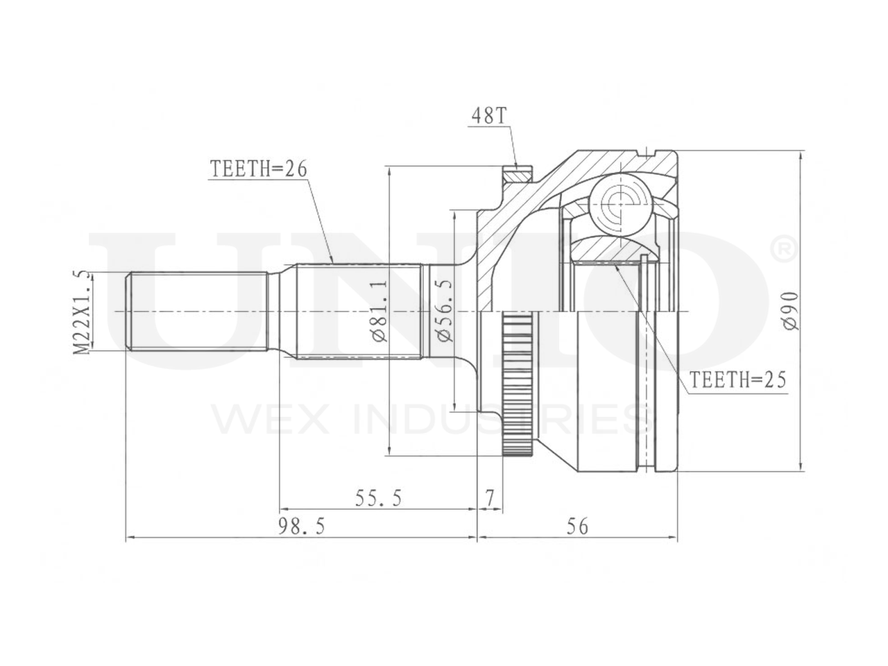Артикул товара - CVJ-20266, Сторона установки:Передний мост, Внешнее зацепление со стороны колеса:26, Внутренне зубчатое соединение со стороны колеса:25, Диаметр прокладки [мм]:56.5, Число зубцов кольца ABS:48, Длина [мм]:154.5, Диаметр шарнира [мм]:90, Кольцо-ABS, диам. [мм]:81.1, Размер резьбы:M22x1,5, EAN:4657814486269, EAN:4657814486269, Тип упаковки:коробка, Длина упаковки [мм]:115, Ширина упаковки [мм]:115, Высота упаковки [мм]:200, Вес нетто [кг]:2,27, Вес брутто [кг]:2,47