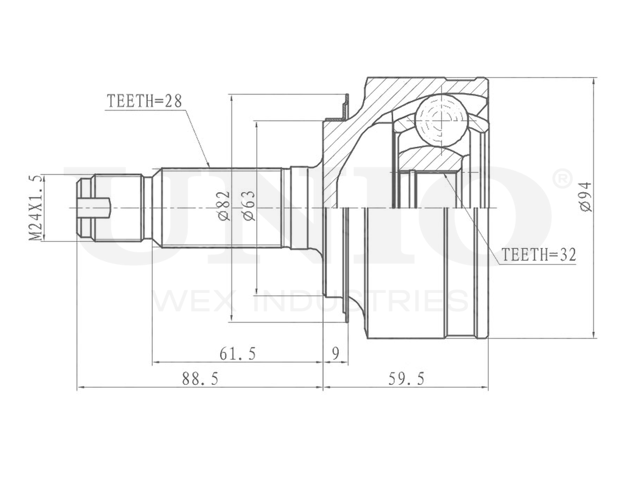 Артикул товара - CVJ-20274, Сторона установки:Передний мост, Внешнее зацепление со стороны колеса:28, Внутренне зубчатое соединение со стороны колеса:32, Диаметр прокладки [мм]:63, Длина [мм]:148, Диаметр шарнира [мм]:94, Размер резьбы:M24x1,5, EAN:4657814486344, EAN:4657814486344, Тип упаковки:коробка, Длина упаковки [мм]:115, Ширина упаковки [мм]:115, Высота упаковки [мм]:200, Вес нетто [кг]:2,64, Вес брутто [кг]:2,84