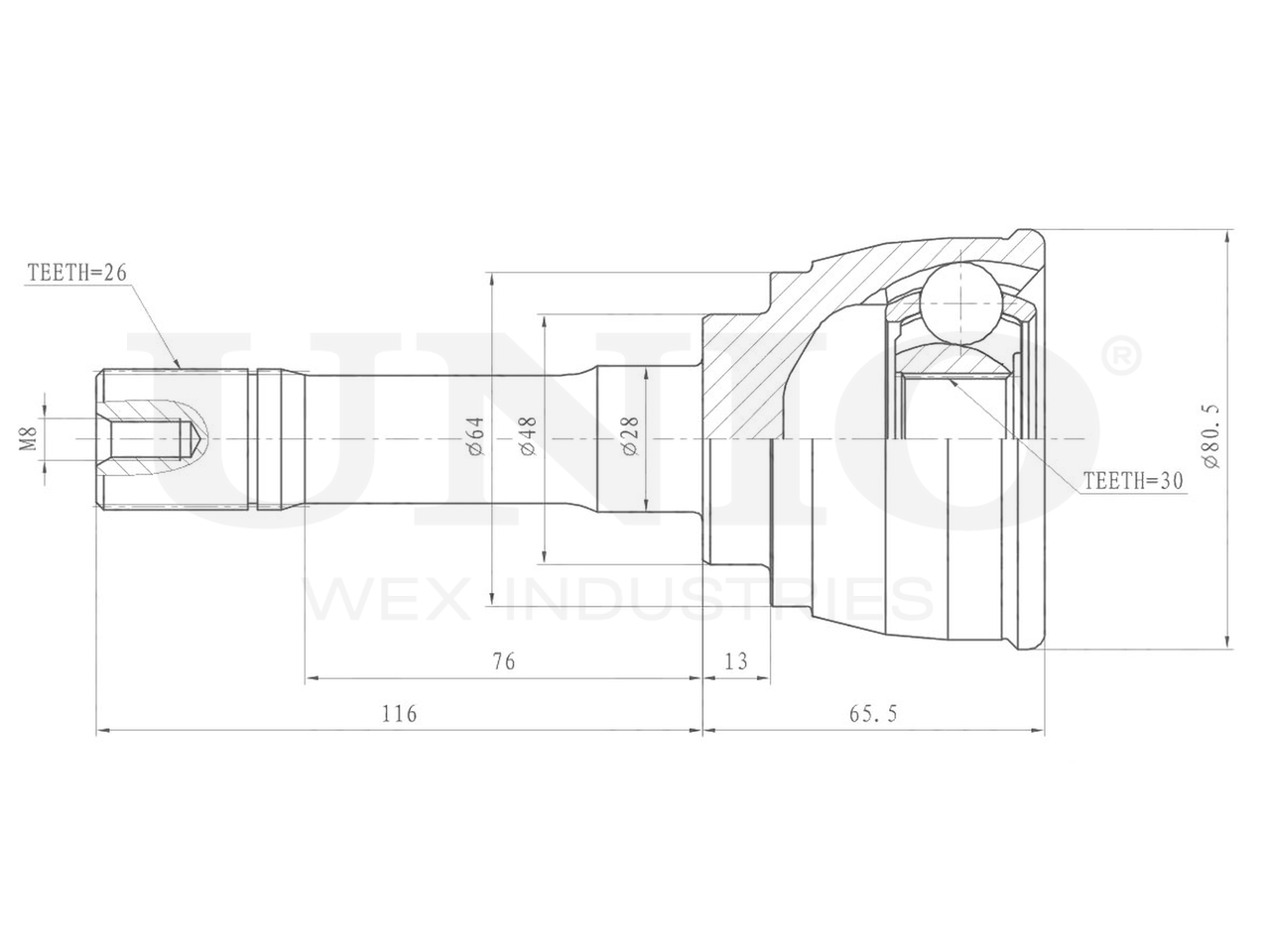 Артикул товара - CVJ-20297, Сторона установки:Передний мост, Внешнее зацепление со стороны колеса:26, Внутренне зубчатое соединение со стороны колеса:30, Диаметр прокладки [мм]:48, Длина [мм]:181.5, Диаметр шарнира [мм]:80.5, Размер резьбы:M8, EAN:4657814486573, EAN:4657814486573, Тип упаковки:коробка, Длина упаковки [мм]:125, Ширина упаковки [мм]:125, Высота упаковки [мм]:260, Вес нетто [кг]:1,94, Вес брутто [кг]:2,18