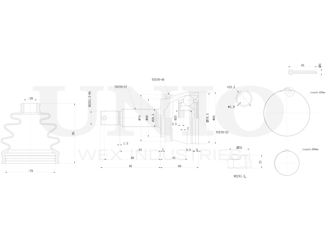 Артикул товара - CVJ-20308, Сторона установки:Задний мост, Внешнее зацепление со стороны колеса:27, Внутренне зубчатое соединение со стороны колеса:22, Диаметр прокладки [мм]:60, Число зубцов кольца ABS:48, Длина [мм]:155, Диаметр шарнира [мм]:82, Кольцо-ABS, диам. [мм]:74, Размер резьбы:M22x1,5, EAN:4657814486689, EAN:4657814486689, Тип упаковки:коробка, Длина упаковки [мм]:115, Ширина упаковки [мм]:115, Высота упаковки [мм]:200, Вес нетто [кг]:2, Вес брутто [кг]:2,2