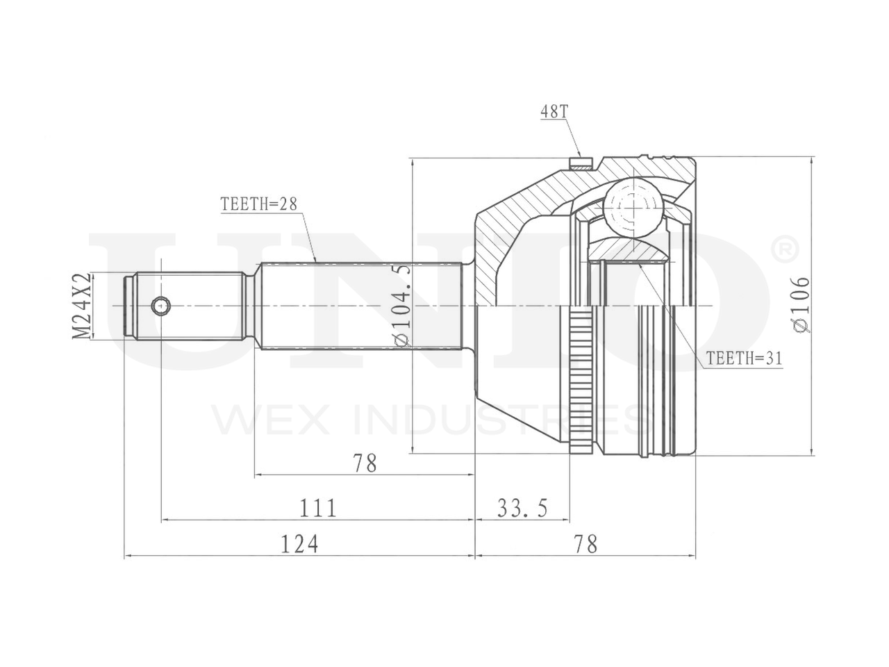 Артикул товара - CVJ-20311, Сторона установки:Передний мост, Внешнее зацепление со стороны колеса:28, Внутренне зубчатое соединение со стороны колеса:31, Диаметр прокладки [мм]:65, Число зубцов кольца ABS:48, Длина [мм]:202, Диаметр шарнира [мм]:106, Кольцо-ABS, диам. [мм]:104.5, Размер резьбы:M24x2, EAN:4657814486719, EAN:4657814486719, Тип упаковки:коробка, Длина упаковки [мм]:125, Ширина упаковки [мм]:125, Высота упаковки [мм]:260, Вес нетто [кг]:3,75, Вес брутто [кг]:3,99