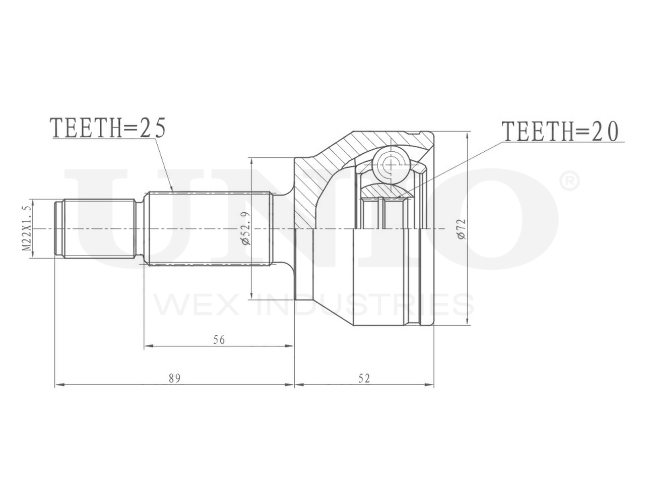 Артикул товара - CVJ-20313, Сторона установки:Передний мост, Внешнее зацепление со стороны колеса:25, Внутренне зубчатое соединение со стороны колеса:20, Диаметр прокладки [мм]:52.9, Длина [мм]:141, Диаметр шарнира [мм]:72, Размер резьбы:M22x1,5, EAN:4657814486733, EAN:4657814486733, Тип упаковки:коробка, Длина упаковки [мм]:115, Ширина упаковки [мм]:115, Высота упаковки [мм]:200, Вес нетто [кг]:1,49, Вес брутто [кг]:1,69