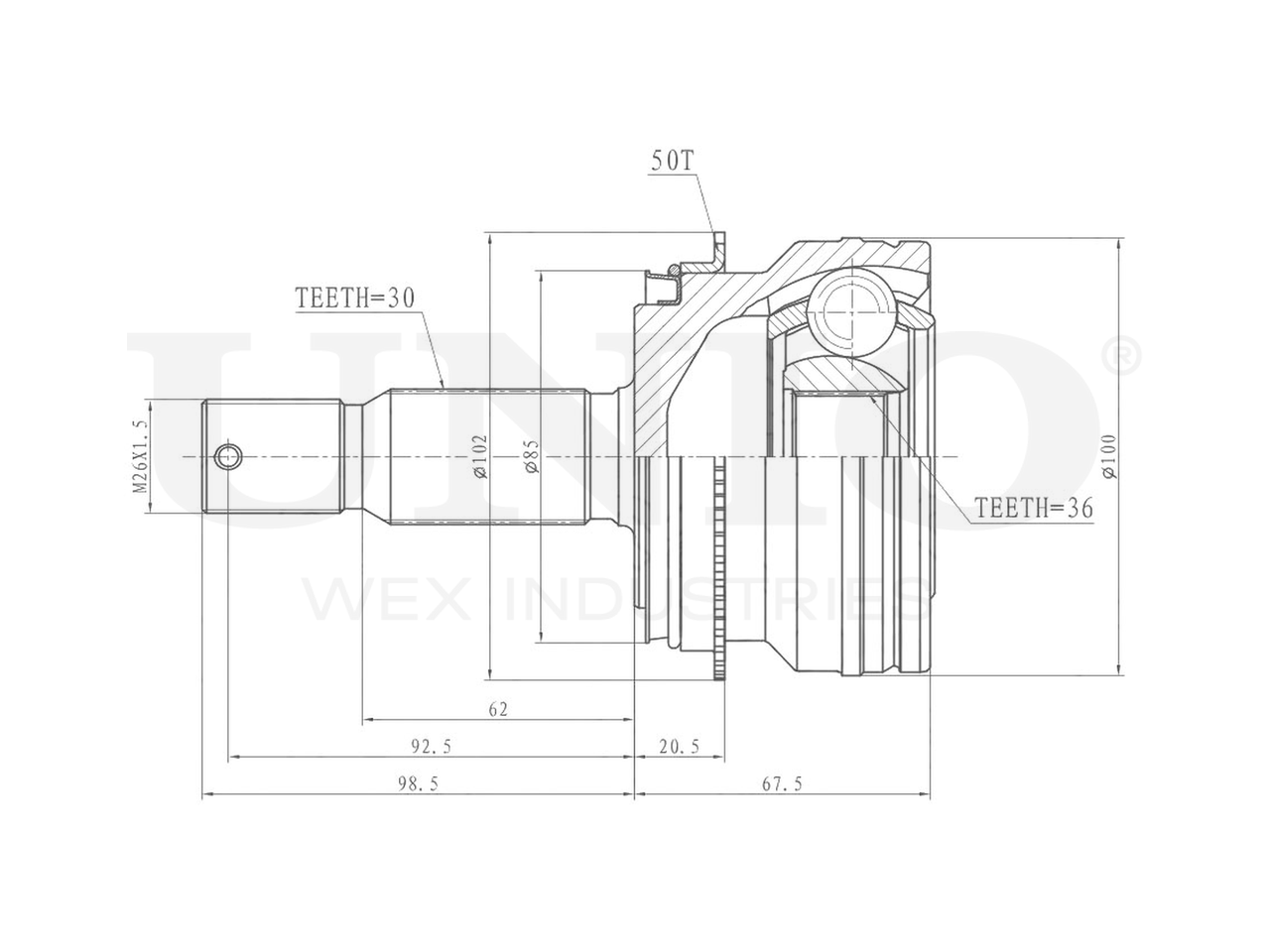 Артикул товара - CVJ-20315, Сторона установки:Передний мост, Внешнее зацепление со стороны колеса:30, Внутренне зубчатое соединение со стороны колеса:36, Диаметр прокладки [мм]:69.2, Число зубцов кольца ABS:50, Длина [мм]:166, Диаметр шарнира [мм]:100, Кольцо-ABS, диам. [мм]:102, Размер резьбы:M26x1,5, EAN:4657814486757, EAN:4657814486757, Тип упаковки:коробка, Длина упаковки [мм]:115, Ширина упаковки [мм]:115, Высота упаковки [мм]:200, Вес нетто [кг]:3,19, Вес брутто [кг]:3,39