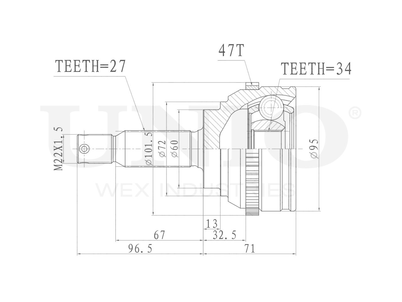 Артикул товара - CVJ-20317, Сторона установки:Передний мост, Внешнее зацепление со стороны колеса:27, Внутренне зубчатое соединение со стороны колеса:34, Диаметр прокладки [мм]:60, Число зубцов кольца ABS:47, Длина [мм]:167.5, Диаметр шарнира [мм]:95, Кольцо-ABS, диам. [мм]:101.5, Размер резьбы:M22x1,5, EAN:4657814486771, EAN:4657814486771, Тип упаковки:коробка, Длина упаковки [мм]:115, Ширина упаковки [мм]:115, Высота упаковки [мм]:200, Вес нетто [кг]:2,86, Вес брутто [кг]:3,06