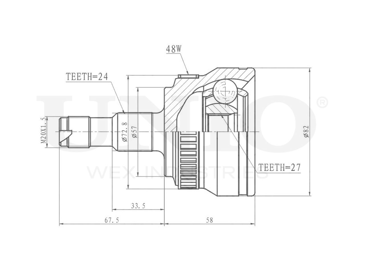 Артикул товара - CVJ-20319, Сторона установки:Передний мост, Внешнее зацепление со стороны колеса:24, Внутренне зубчатое соединение со стороны колеса:27, Диаметр прокладки [мм]:57, Число зубцов кольца ABS:48, Длина [мм]:125.5, Диаметр шарнира [мм]:82, Кольцо-ABS, диам. [мм]:72.9, Размер резьбы:M20x1,5, EAN:4657814486795, EAN:4657814486795, Тип упаковки:коробка, Длина упаковки [мм]:115, Ширина упаковки [мм]:115, Высота упаковки [мм]:200, Вес нетто [кг]:1,79, Вес брутто [кг]:1,99