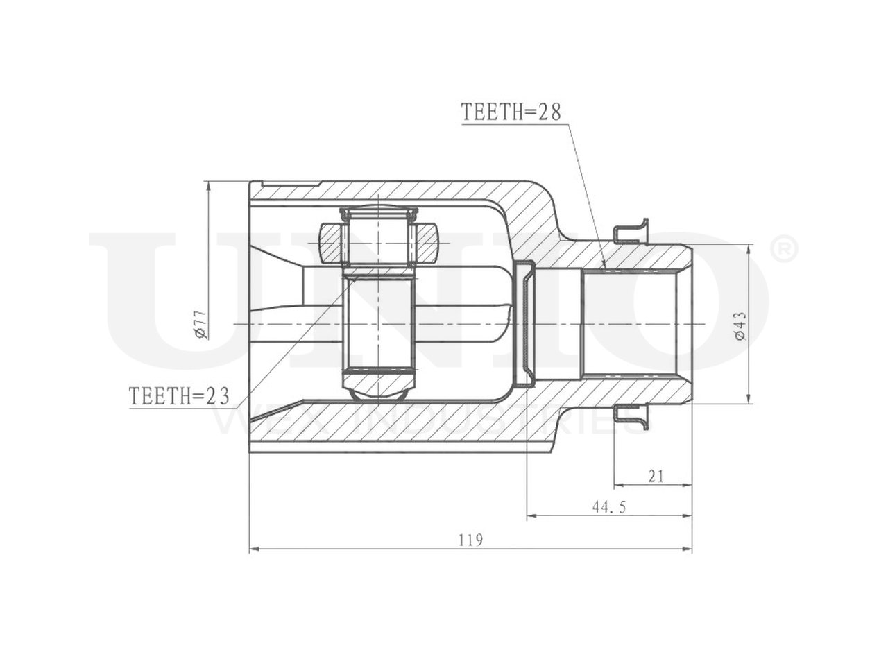 Артикул товара - CVJ-30096, Сторона установки:Передний мост справа, Внешнее зацепление со стороны дифференциала:28, Внутреннее зубчатое соединение со стороны дифференциала:23, Диаметр прокладки [мм]:43, Длина [мм]:119, Диаметр 2 [мм]:77, EAN:4657814487891, EAN:4657814487891, Тип упаковки:коробка, Длина упаковки [мм]:115, Ширина упаковки [мм]:115, Высота упаковки [мм]:200, Вес нетто [кг]:1,82, Вес брутто [кг]:2,02