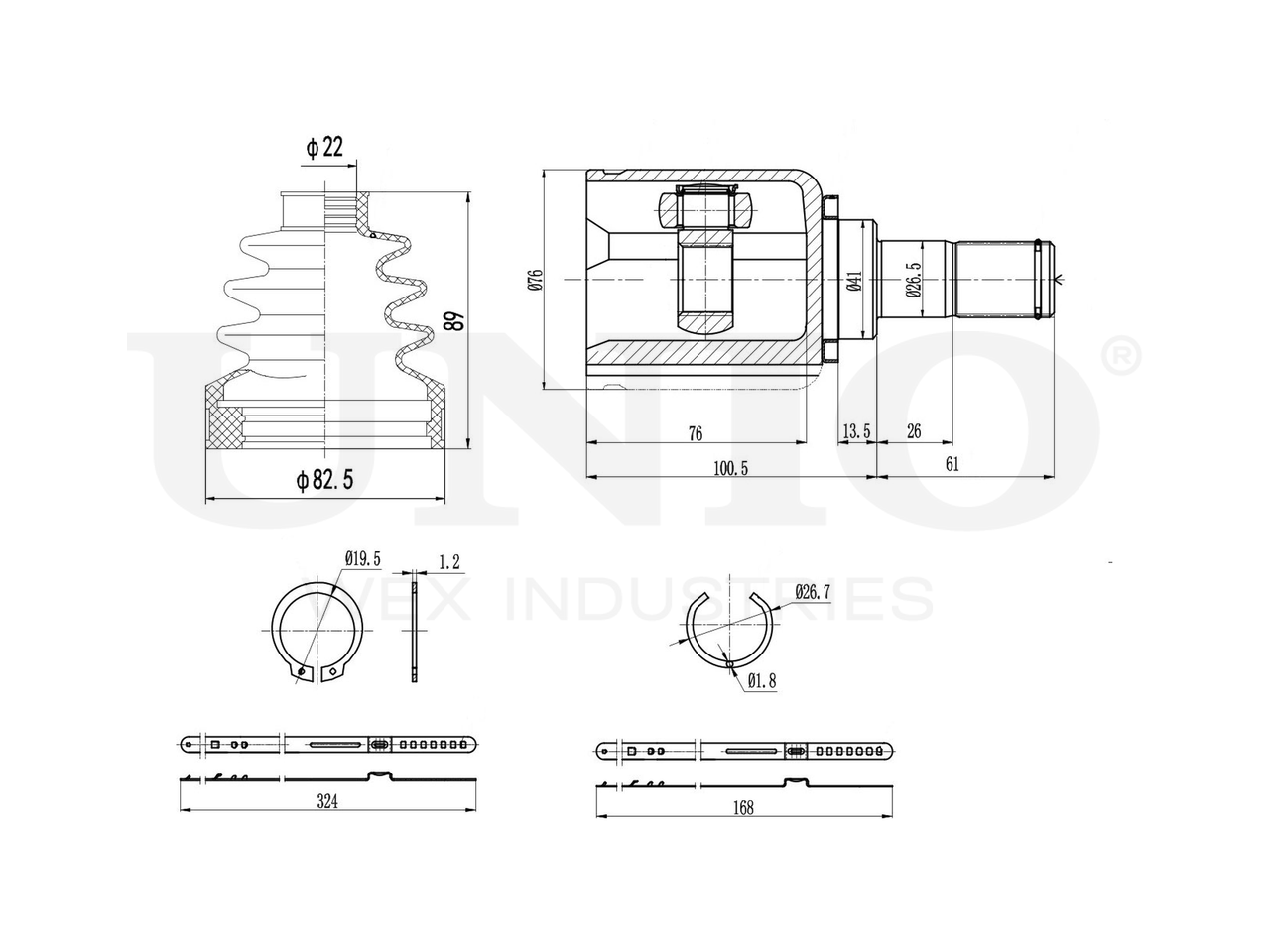Артикул товара - CVJ-30012, Сторона установки:Передний мост,Со стороны коробки передач, Внешнее зацепление со стороны дифференциала:25, Внутреннее зубчатое соединение со стороны дифференциала:22, Диаметр прокладки [мм]:41, Длина [мм]:161.5, Диаметр шарнира [мм]:76, Диаметр ролика трипоида [мм]:32, EAN:4657814487051, EAN:4657814487051, Тип упаковки:коробка, Длина упаковки [мм]:115, Ширина упаковки [мм]:115, Высота упаковки [мм]:200, Вес нетто [кг]:2,02, Вес брутто [кг]:2,22