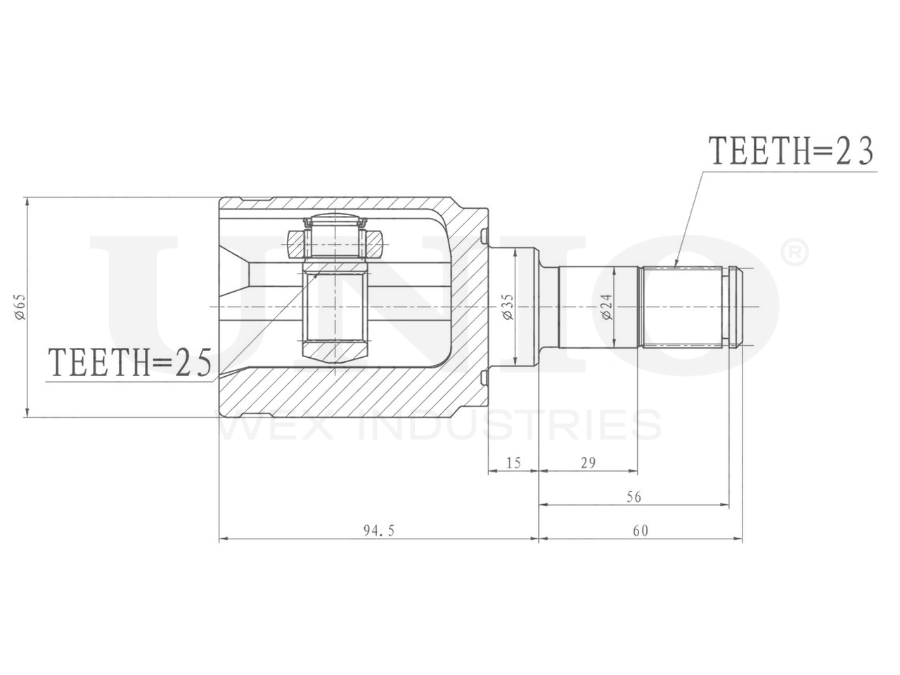 Артикул товара - CVJ-30062, Сторона установки:Задний мост, Внешнее зацепление со стороны дифференциала:23, Внутреннее зубчатое соединение со стороны дифференциала:25, Диаметр прокладки [мм]:35, Длина [мм]:154.5, Диаметр 2 [мм]:65, EAN:4657814487556, EAN:4657814487556, Тип упаковки:коробка, Длина упаковки [мм]:115, Ширина упаковки [мм]:115, Высота упаковки [мм]:200, Вес нетто [кг]:1,58, Вес брутто [кг]:1,78