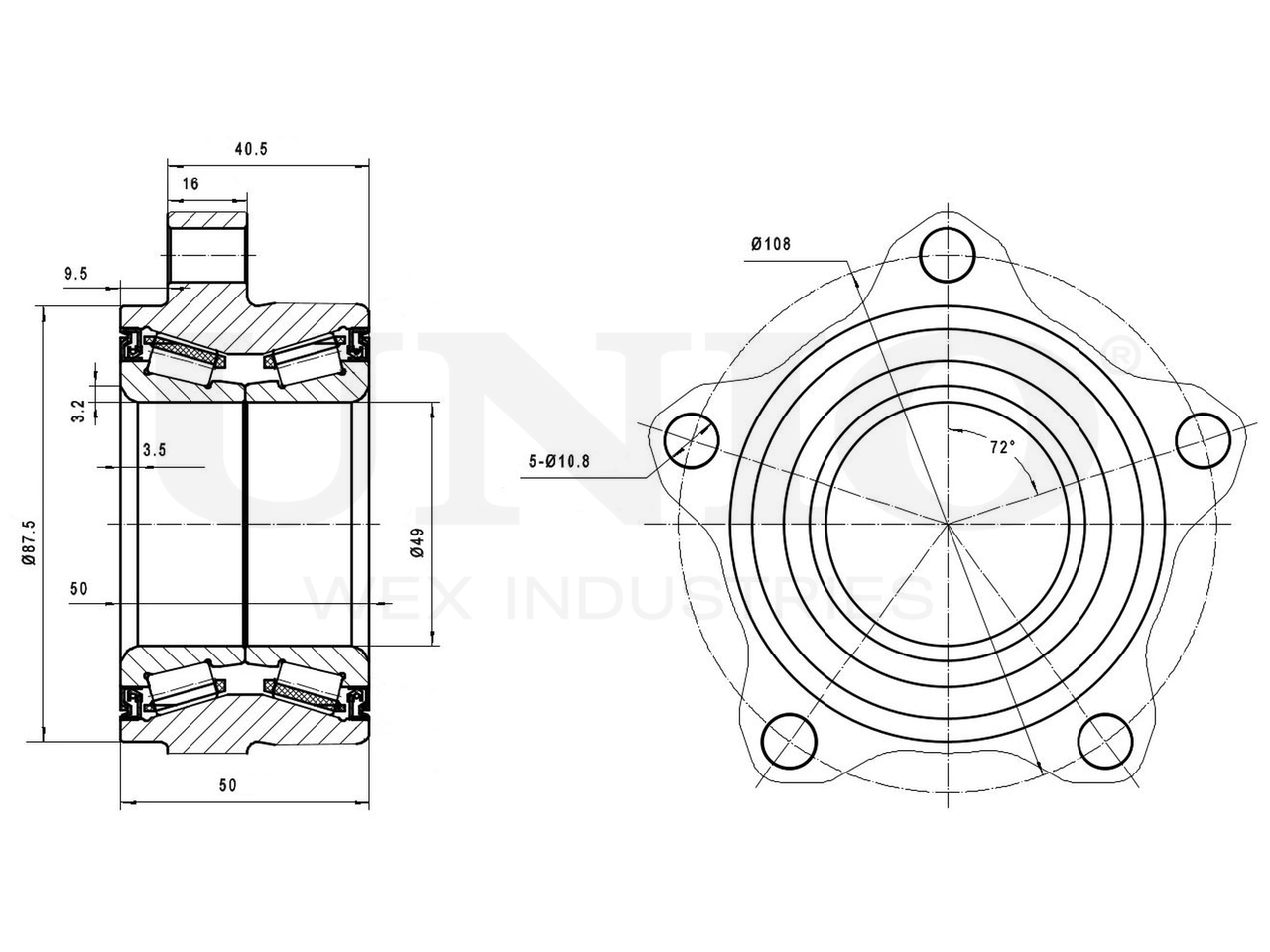 Артикул товара - HUB-20047, Наружный диаметр [мм]:108, Наружный диаметр 1 [мм]:87.5, Внутренний диаметр [мм]:49, Ширина [мм]:50, Сторона установки:Передний мост, Число отверстий в диске колеса:5, Диаметр расположения крепёжных отверстий ступицы [мм]:108, EAN:4657817767921, EAN:4657817767921, Тип упаковки:коробка, Длина упаковки [мм]:144, Ширина упаковки [мм]:134, Высота упаковки [мм]:90, Вес нетто [кг]:1,8, Вес брутто [кг]:1,95