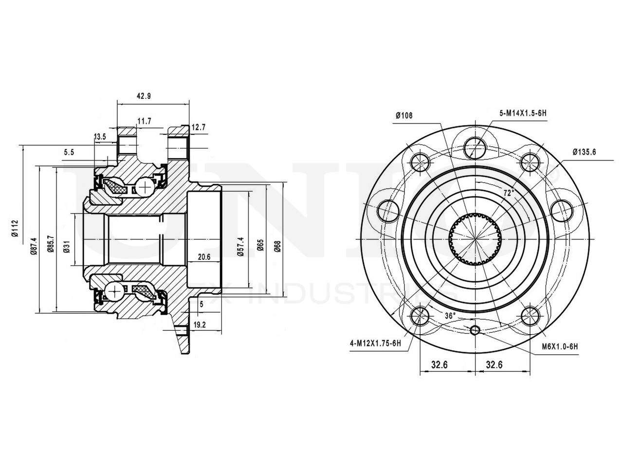 Артикул товара - HUB-20082, Наружный диаметр [мм]:135.6, Наружный диаметр 1 [мм]:65, Наружный диаметр 2 [мм]:85.7, Внутренний диаметр [мм]:31, Внутренний диаметр 1 [мм]:57.4, Внутренний диаметр 2 [мм]:29.3, Ширина 1 [мм]:42.9, Ширина 2 [мм]:82.1, Сторона установки:Передний мост, Число отверстий в диске колеса:5, Диаметр расположения крепёжных отверстий ступицы [мм]:108, EAN:4657817768270, EAN:4657817768270, Тип упаковки:коробка, Длина упаковки [мм]:170, Ширина упаковки [мм]:160, Высота упаковки [мм]:120, Вес нетто [кг]:2,9, Вес брутто [кг]:3,1