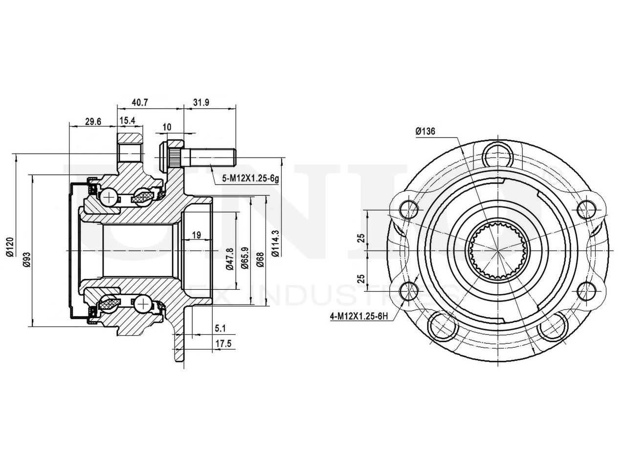 Артикул товара - HUB-20101, Наружный диаметр [мм]:136, Наружный диаметр 1 [мм]:65, Наружный диаметр 2 [мм]:93, Ширина 1 [мм]:40.7, Ширина 2 [мм]:102.2, Сторона установки:Передний мост, Число отверстий в диске колеса:5, Диаметр расположения крепёжных отверстий ступицы [мм]:114.3, EAN:4657817768461, EAN:4657817768461, Тип упаковки:коробка, Длина упаковки [мм]:170, Ширина упаковки [мм]:160, Высота упаковки [мм]:120, Вес нетто [кг]:3,25, Вес брутто [кг]:3,45