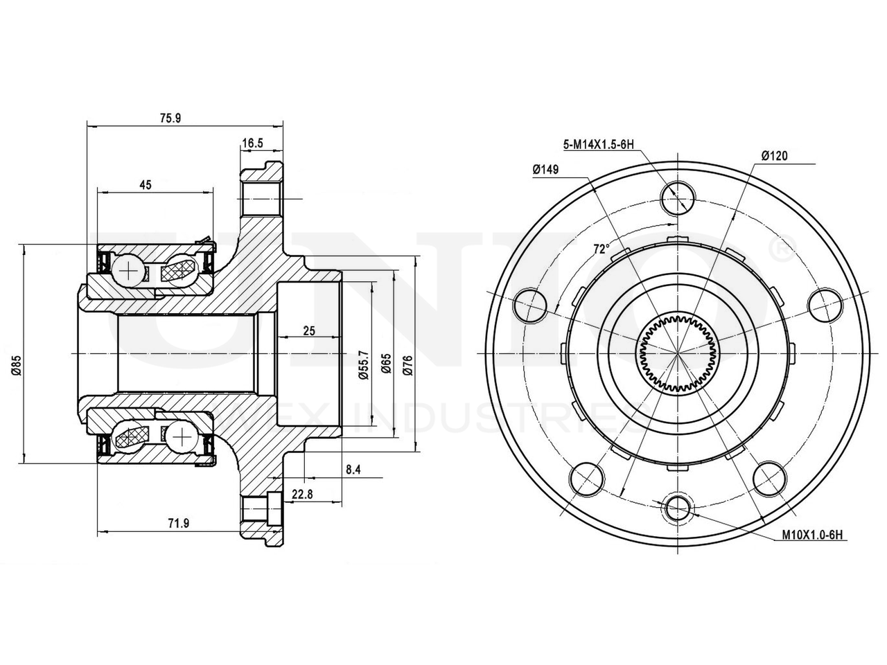 Артикул товара - HUB-20007, Наружный диаметр [мм]:149, Наружный диаметр 1 [мм]:65, Наружный диаметр 2 [мм]:85, Внутренний диаметр [мм]:55.7, Ширина [мм]:102.2, Сторона установки:Передний мост, Число отверстий в диске колеса:5, Диаметр расположения крепёжных отверстий ступицы [мм]:120, Число зубцов:38, EAN:4657817767525, EAN:4657817767525, Тип упаковки:коробка, Длина упаковки [мм]:170, Ширина упаковки [мм]:160, Высота упаковки [мм]:120, Вес нетто [кг]:3,94, Вес брутто [кг]:4,14