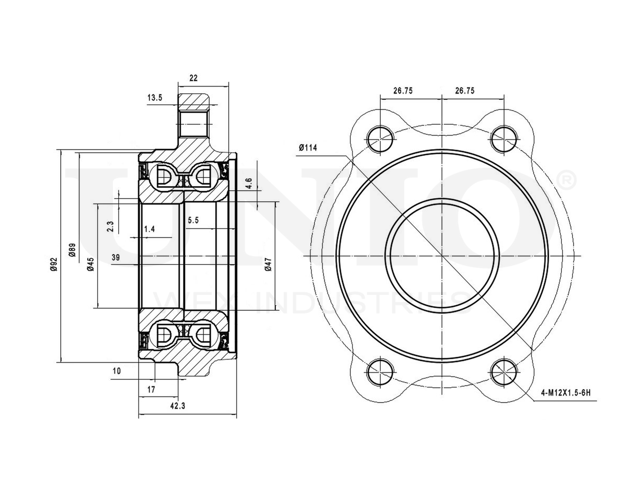 Артикул товара - HUB-20105, Наружный диаметр [мм]:114, Наружный диаметр 1 [мм]:92, Внутренний диаметр 1 [мм]:45, Внутренний диаметр 2 [мм]:47, Ширина [мм]:42.3, Сторона установки:Задний мост,Передний мост, Число отверстий в диске колеса:4, Диаметр расположения крепёжных отверстий ступицы [мм]:114, EAN:4657817768508, EAN:4657817768508, Тип упаковки:коробка, Длина упаковки [мм]:144, Ширина упаковки [мм]:134, Высота упаковки [мм]:90, Вес нетто [кг]:2, Вес брутто [кг]:2,15