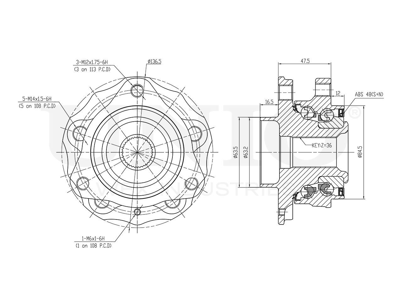 Артикул товара - HUB-20313, Сторона установки:С обеих сторон, Наружный диаметр [мм]:136.5, Ширина [мм]:79.5, Число отверстий в диске колеса:5, Диаметр расположения крепёжных отверстий ступицы [мм]:108, Число зубцов:36, EAN:4657844651200, EAN:4657844651200, Тип упаковки:коробка, Длина упаковки [мм]:170, Ширина упаковки [мм]:160, Высота упаковки [мм]:120, Вес нетто [кг]:3,026, Вес брутто [кг]:3,171