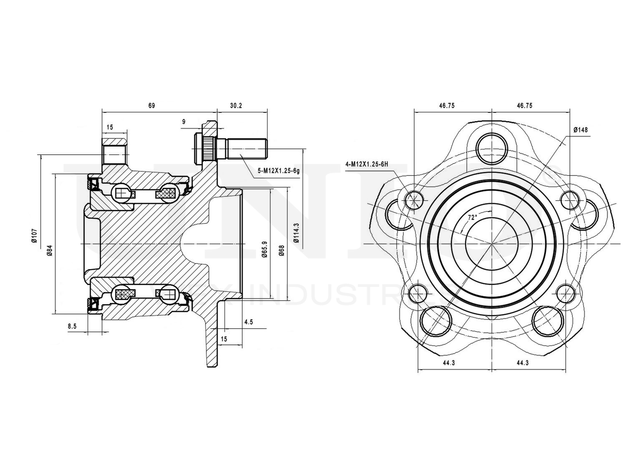 Артикул товара - HUB-20049, Наружный диаметр [мм]:148, Наружный диаметр 1 [мм]:65.9, Наружный диаметр 2 [мм]:84, Ширина 1 [мм]:69, Ширина 2 [мм]:110.9, Сторона установки:Задний мост, Число отверстий в диске колеса:5, Диаметр расположения крепёжных отверстий ступицы [мм]:114.3, EAN:4657817767945, EAN:4657817767945, Тип упаковки:коробка, Длина упаковки [мм]:170, Ширина упаковки [мм]:160, Высота упаковки [мм]:150, Вес нетто [кг]:3,6, Вес брутто [кг]:3,85