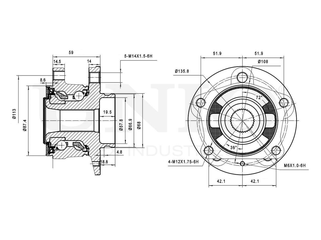 Артикул товара - HUB-20052, Наружный диаметр [мм]:135.8, Наружный диаметр 1 [мм]:68, Наружный диаметр 2 [мм]:87.4, Внутренний диаметр [мм]:57.8, Ширина 1 [мм]:59, Ширина 2 [мм]:89.6, Сторона установки:Задний мост, Число отверстий в диске колеса:5, Диаметр расположения крепёжных отверстий ступицы [мм]:108, EAN:4657817767976, EAN:4657817767976, Тип упаковки:коробка, Длина упаковки [мм]:170, Ширина упаковки [мм]:160, Высота упаковки [мм]:120, Вес нетто [кг]:3,75, Вес брутто [кг]:3,95