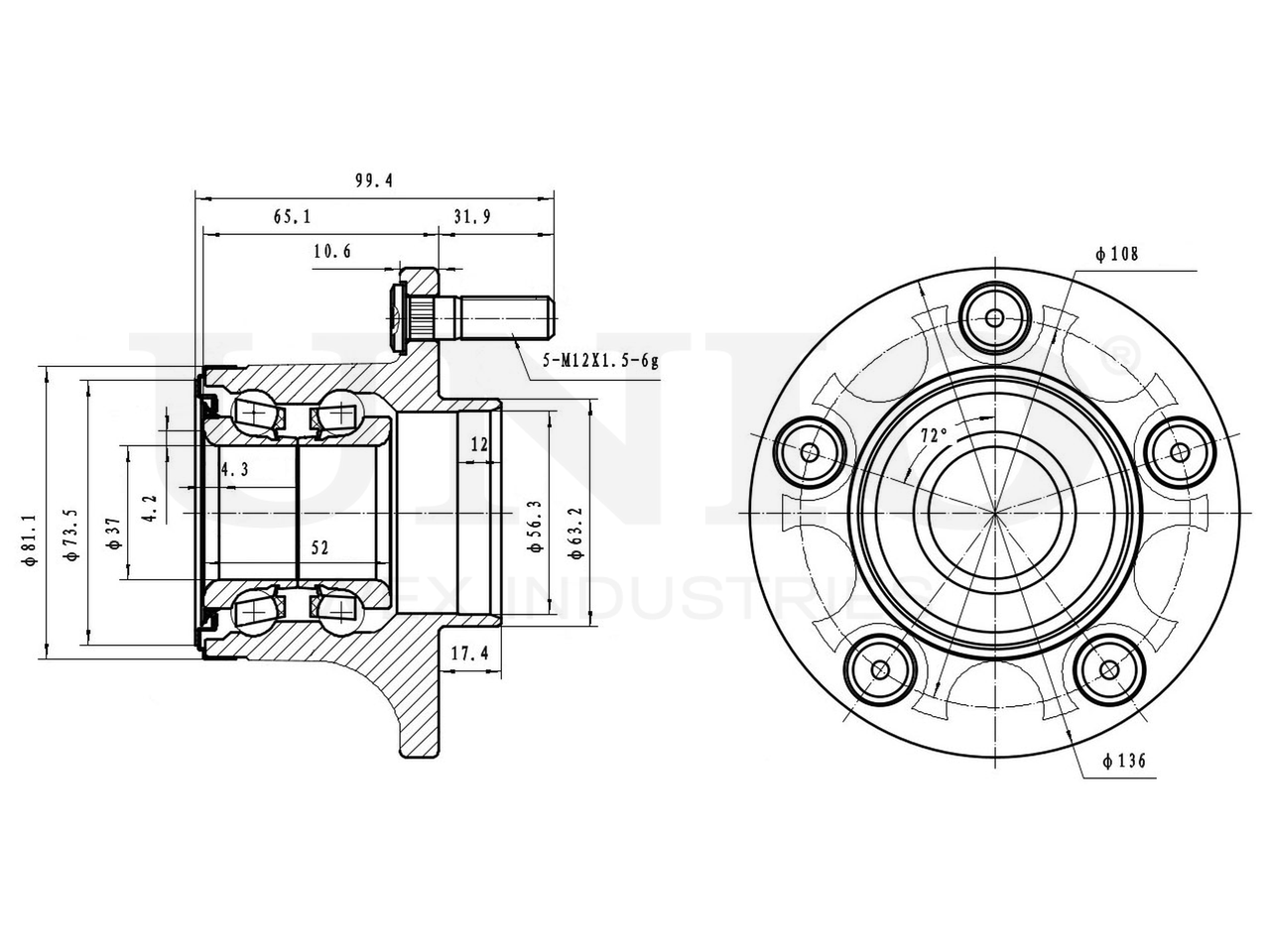 Артикул товара - HUB-20134, Наружный диаметр [мм]:136, Наружный диаметр 1 [мм]:63.2, Наружный диаметр 2 [мм]:81.1, Внутренний диаметр 1 [мм]:37, Внутренний диаметр 2 [мм]:56.3, Ширина 1 [мм]:82.5, Ширина 2 [мм]:99.4, Сторона установки:Задний мост, Число отверстий в диске колеса:5, Диаметр расположения крепёжных отверстий ступицы [мм]:108, EAN:4657817768799, EAN:4657817768799, Тип упаковки:коробка, Длина упаковки [мм]:170, Ширина упаковки [мм]:160, Высота упаковки [мм]:120, Вес нетто [кг]:1,8, Вес брутто [кг]:2