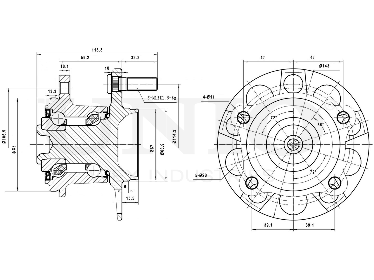 Артикул товара - HUB-20136, Наружный диаметр [мм]:143, Наружный диаметр 1 [мм]:67, Наружный диаметр 2 [мм]:88, Ширина 1 [мм]:59.2, Ширина 2 [мм]:113.5, Сторона установки:Задний мост, Число отверстий в диске колеса:5, Диаметр расположения крепёжных отверстий ступицы [мм]:114.3, EAN:4657817768812, EAN:4657817768812, Тип упаковки:коробка, Длина упаковки [мм]:170, Ширина упаковки [мм]:160, Высота упаковки [мм]:150, Вес нетто [кг]:3,22, Вес брутто [кг]:3,47