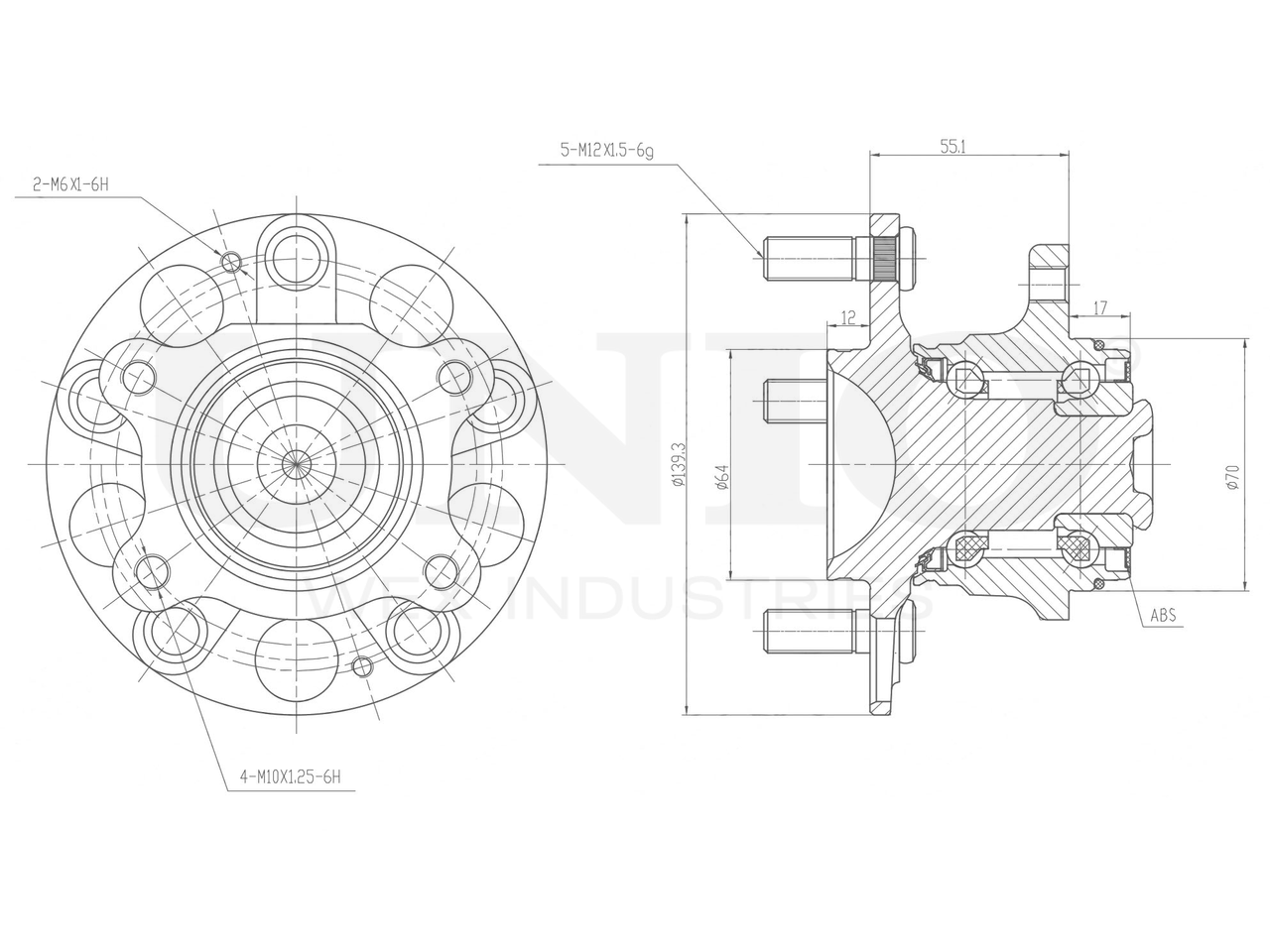 Артикул товара - HUB-20163, Наружный диаметр 1 [мм]:139.3, Наружный диаметр 2 [мм]:64, Ширина [мм]:55.1, Сторона установки:Задний мост, Число отверстий в диске колеса:5, Диаметр расположения крепёжных отверстий ступицы [мм]:114.3, EAN:4657817769086, EAN:4657817769086, Тип упаковки:коробка, Длина упаковки [мм]:170, Ширина упаковки [мм]:160, Высота упаковки [мм]:150, Вес нетто [кг]:2,71, Вес брутто [кг]:2,96