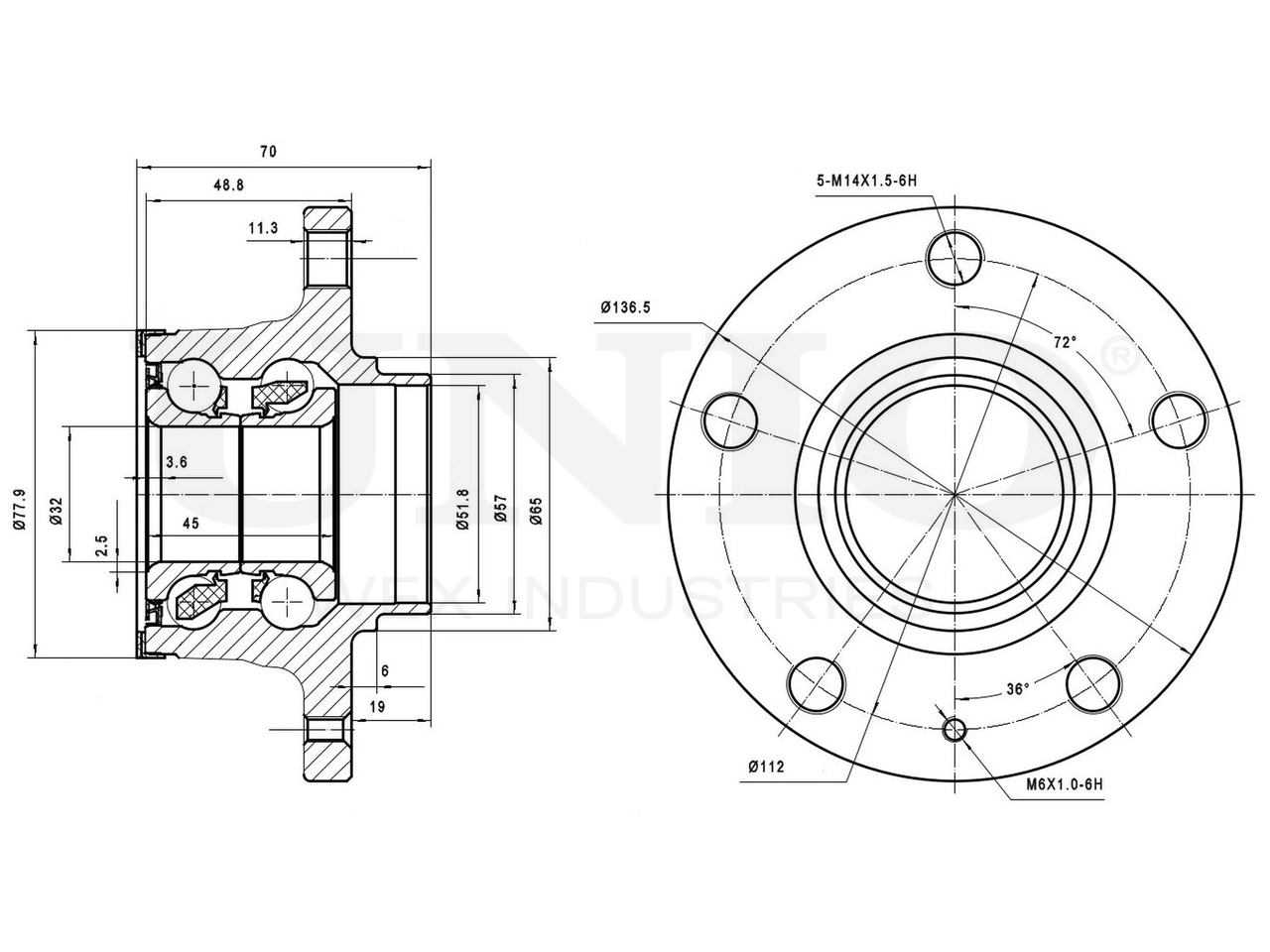 Артикул товара - HUB-20153, Наружный диаметр [мм]:136.5, Наружный диаметр 1 [мм]:57, Наружный диаметр 2 [мм]:77.9, Внутренний диаметр 1 [мм]:32, Внутренний диаметр 2 [мм]:51.8, Ширина 1 [мм]:48.8, Ширина 2 [мм]:70, Сторона установки:Задний мост, Число отверстий в диске колеса:5, Диаметр расположения крепёжных отверстий ступицы [мм]:112, EAN:4657817768980, EAN:4657817768980, Тип упаковки:коробка, Длина упаковки [мм]:170, Ширина упаковки [мм]:160, Высота упаковки [мм]:120, Вес нетто [кг]:2,2, Вес брутто [кг]:2,4