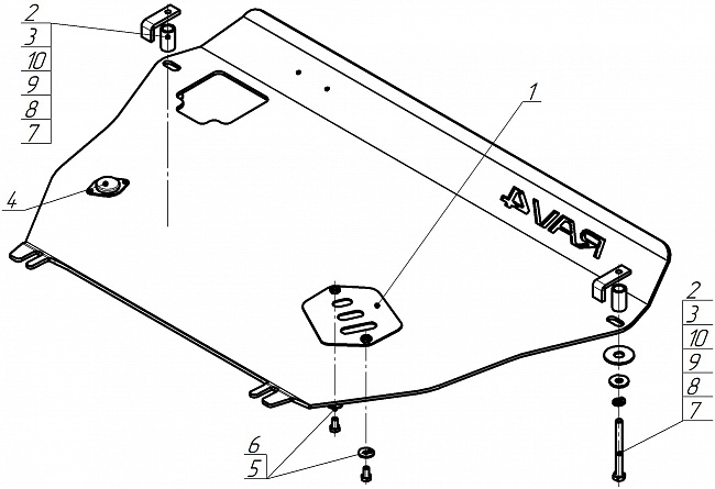 Подходит для авто: Toyota RAV 4 2010-2013. Материал: 5 мм, Алюминий. Производитель: MOTODOR. Защита для: Двигатель,Коробка переключения передач. Кузов: Внедорожник. Тип двигателя: Бензиновый. Привод/Объем двигателя: на все колеса. 2,0.