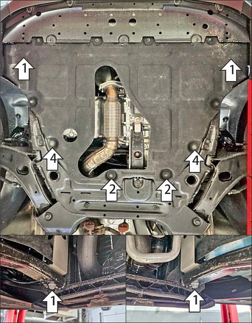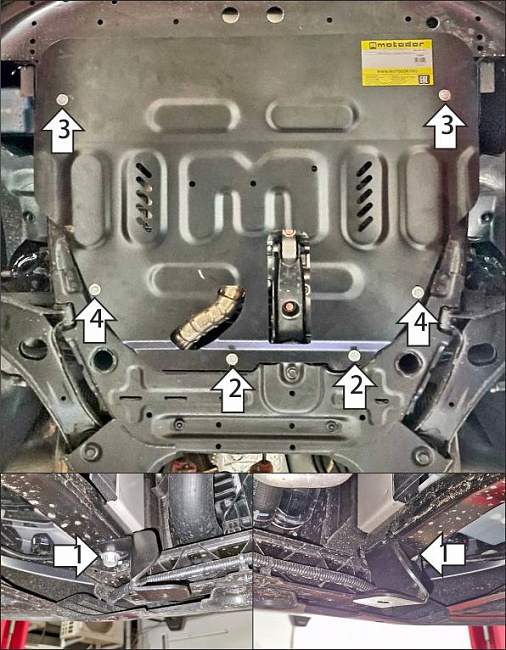 Подходит для авто: KGM Tivoli 2023-н.в.. Материал: 2 мм, Сталь. Производитель: MOTODOR. Защита для: Двигатель,Коробка переключения передач. Кузов: Хэтчбек. Тип двигателя: Бензиновый. Привод/Объем двигателя: Передний. 1,5Устанавливается поверх штатного пыльника.