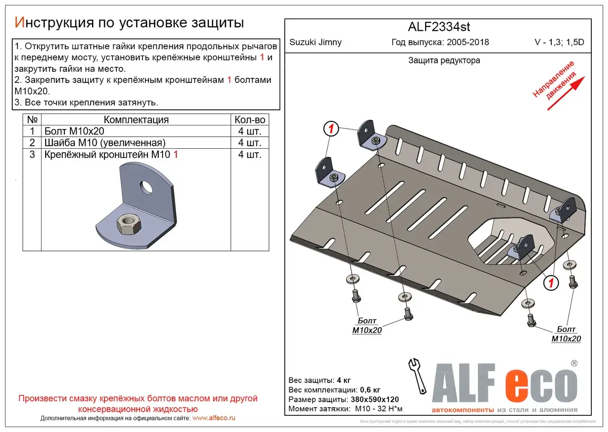 Защита редуктора (сталь 2 мм) для Suzuki Jimny 2005-2018 (V - 1.3; 1.5d) Alfeco.ALF2334st