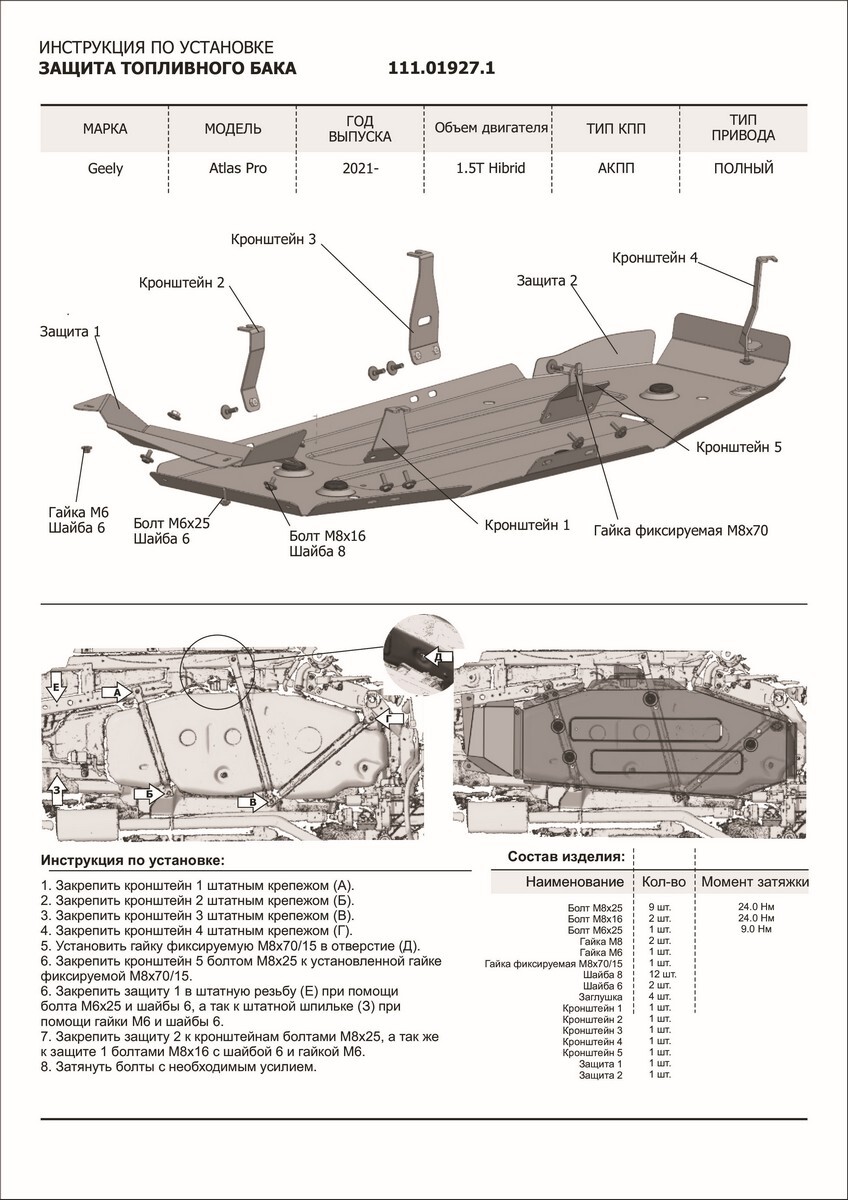 - Защита устанавливается в штатные места кузова автомобиля.